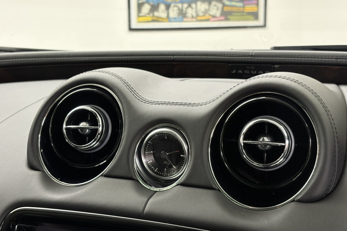 The exterior of our XJ Anniversary is presented in Ultimate Black Metallic which looks wonderful from all angles. Further exterior detailing comes in the form of the unmarked 20" alloy wheels, rear privacy glass, twin exhaust tailpipes, chrome Jaguar badge and script to the rear with the classic Jaguar badge presented on the front grille and further chrome detailing across the exterior of the car to finish.