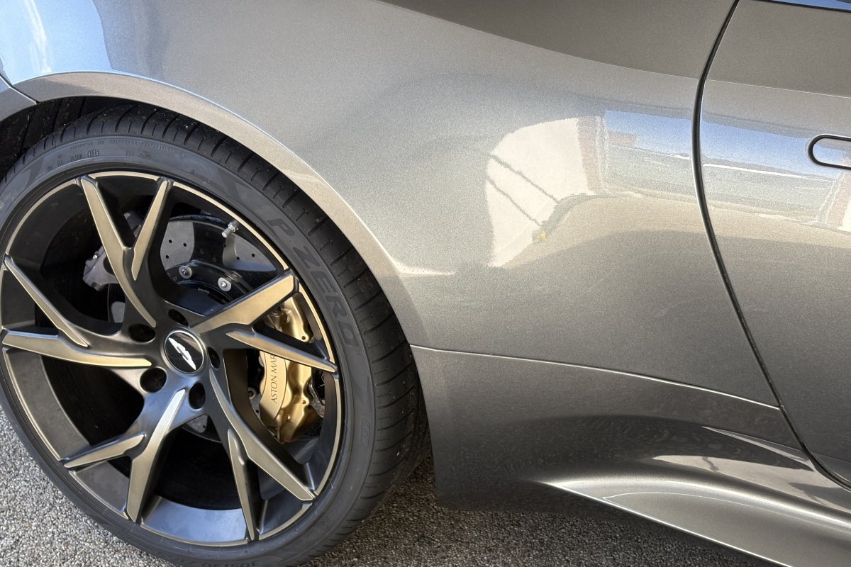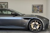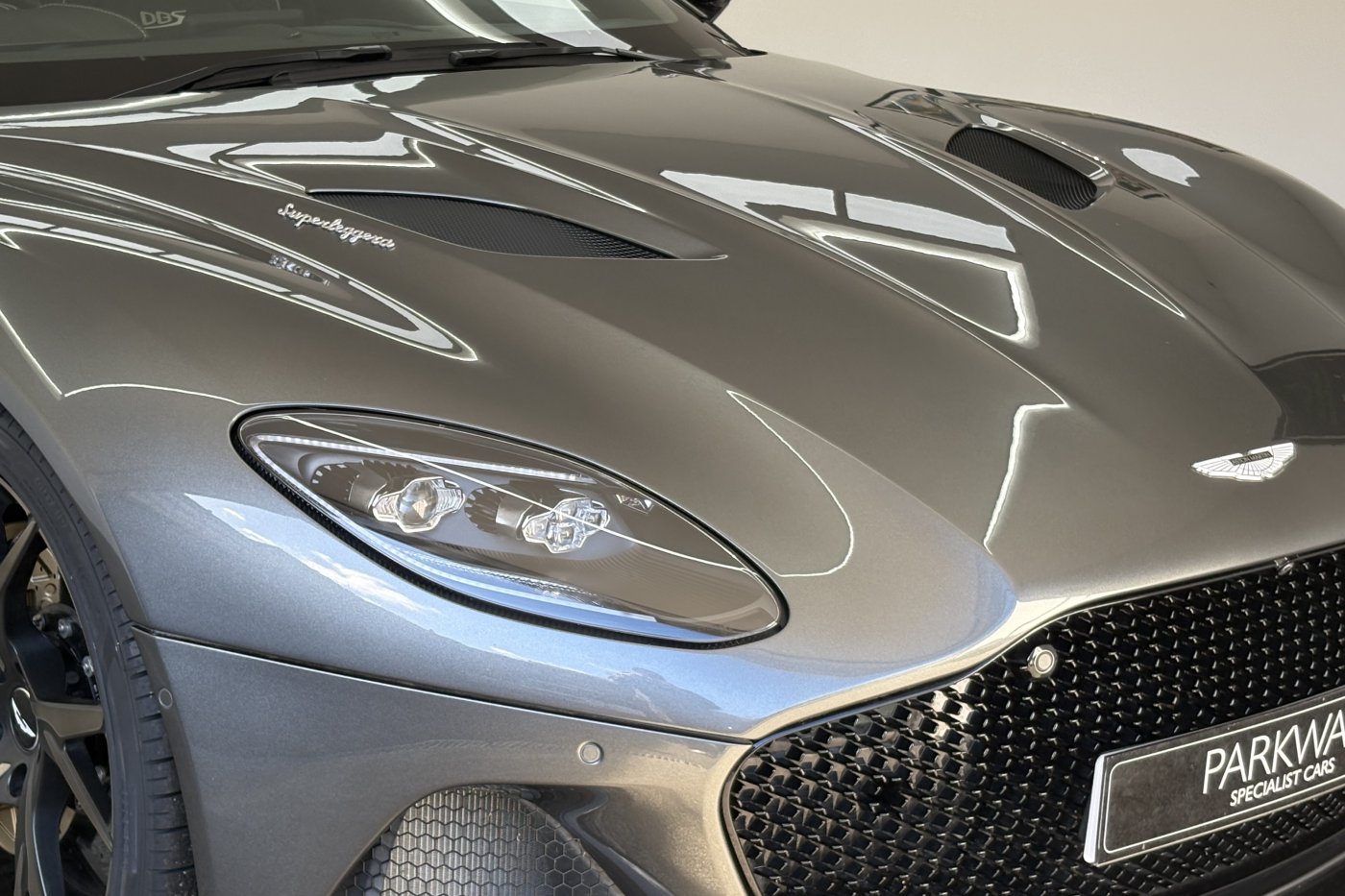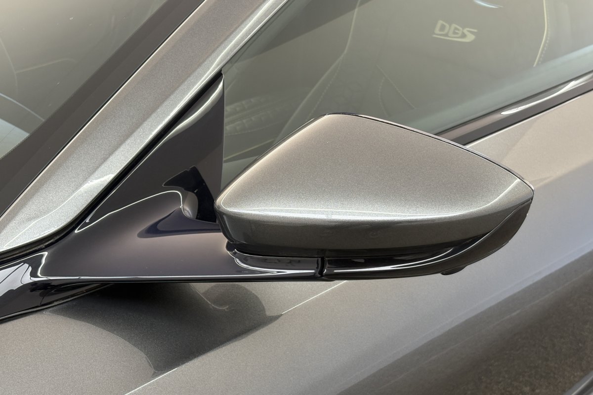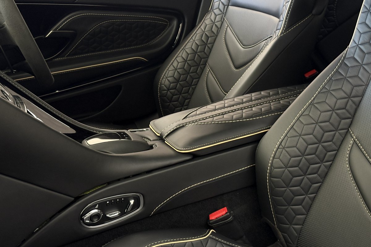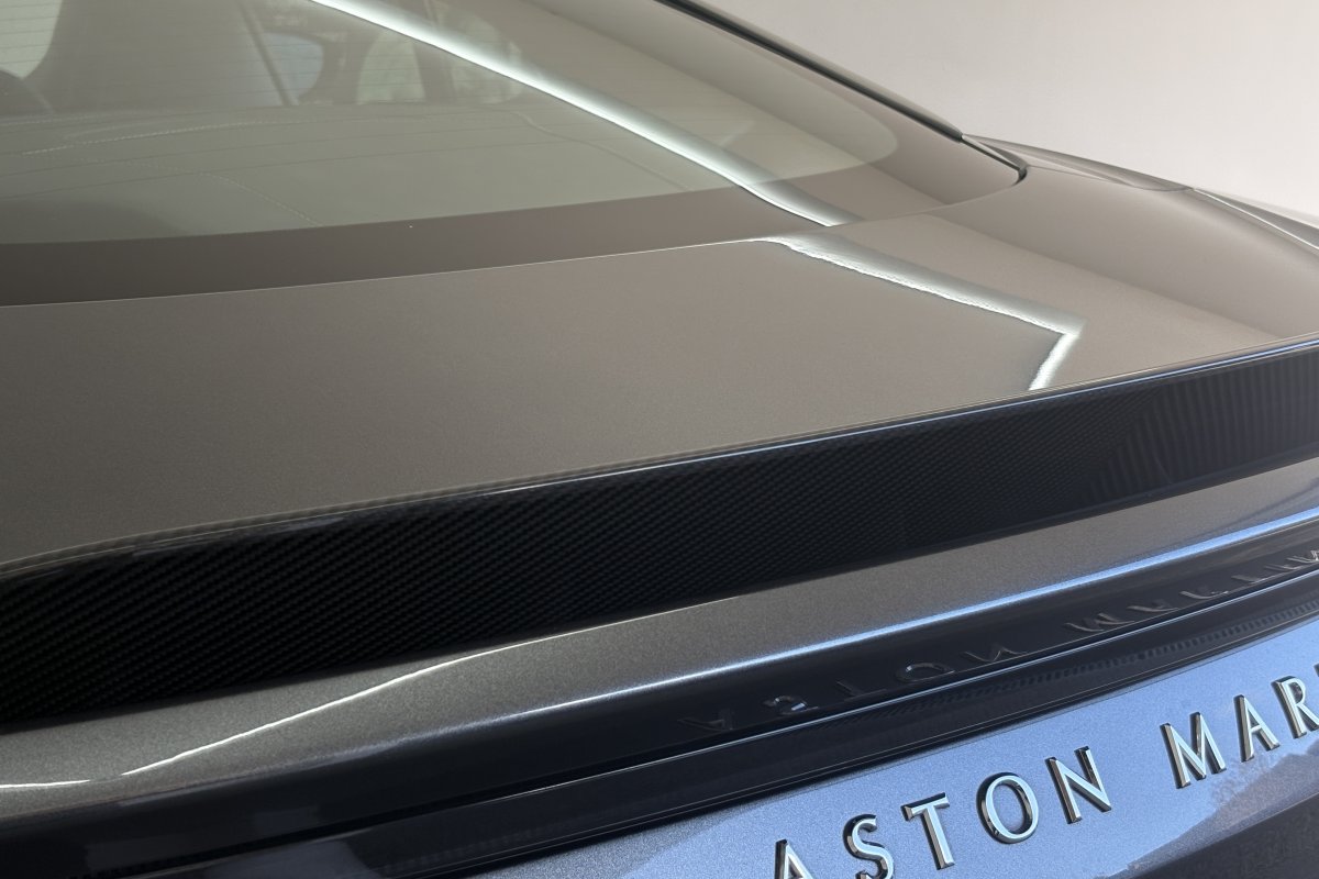 The front of the DBS features a new front bumper, with a larger centre grille compared to the DB11, for improved engine cooling, along with two air extractors on the sides to cool the brakes and two vents on the hood that aid in the engine cooling process. The 5.2-litre twin-turbocharged V12 engine, which is cast and manufactured at Grainger & Worrall in the United Kingdom before being shipped to the Aston Martin engine plant in Cologne for assembly, is rated at 725 PS (533 kW; 715 hp) at 6,500 rpm and 900 N⋅m (664 lb⋅ft) of torque from 1,800–5,000 rpm.[8] In order to optimise the centre of gravity and weight distribution, the engine has been positioned as low and as far back in the chassis as possible.