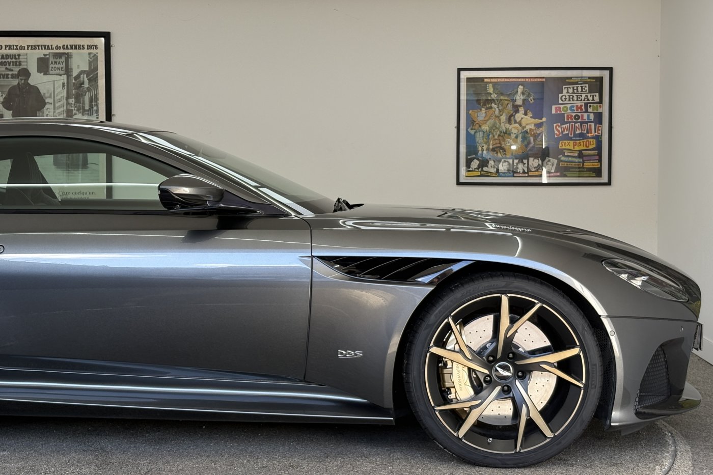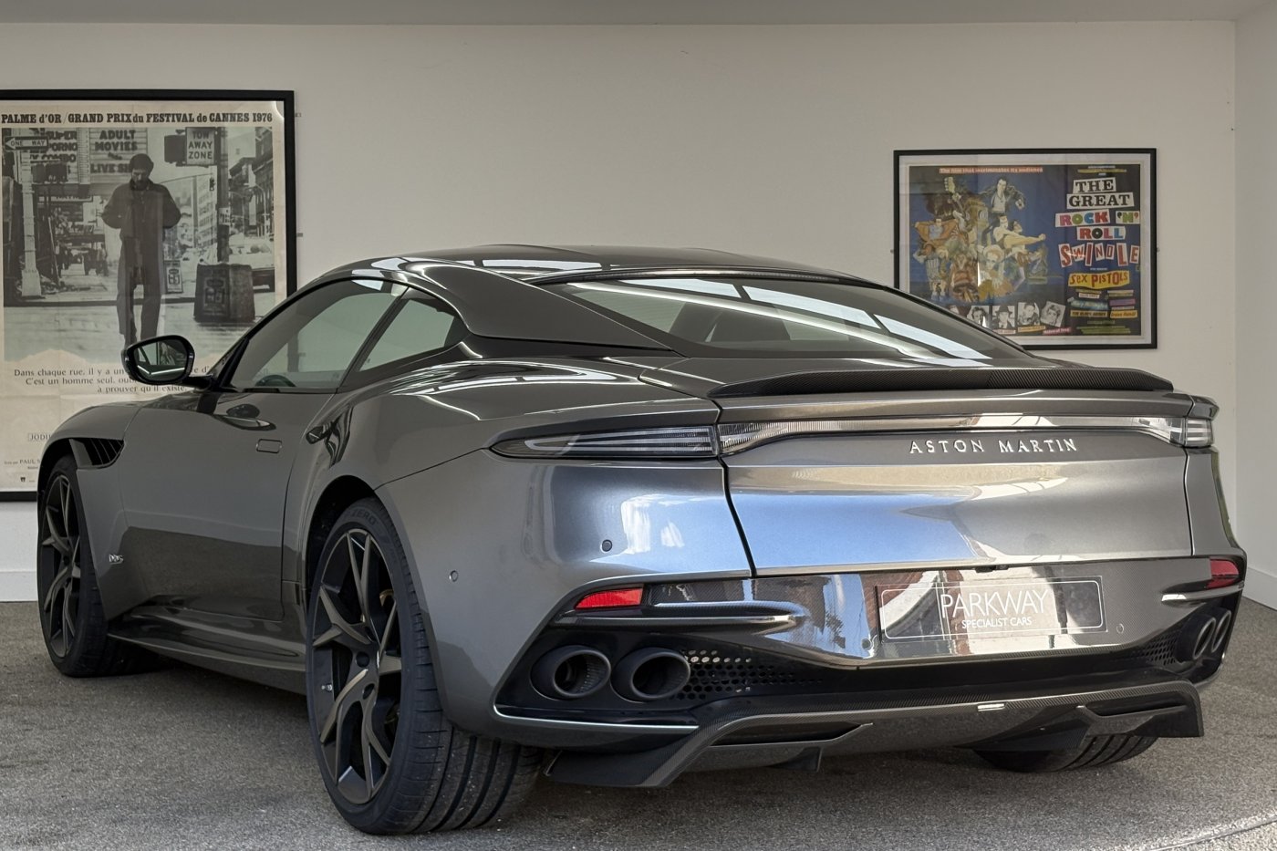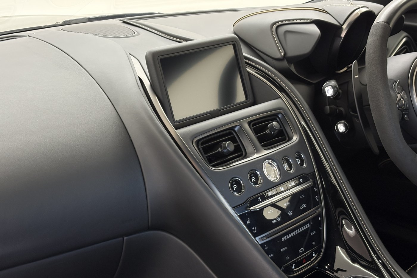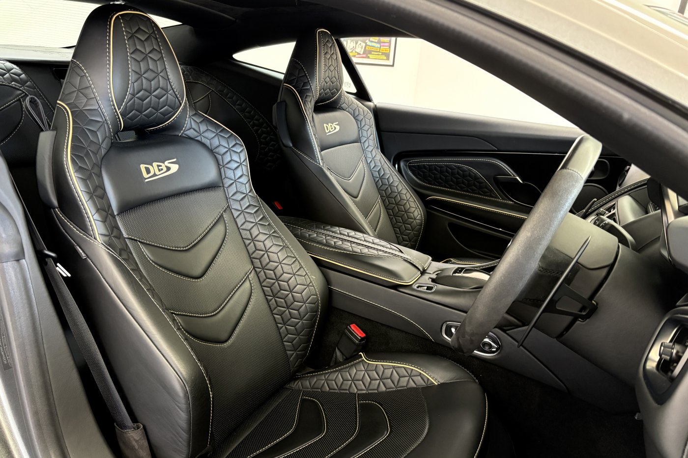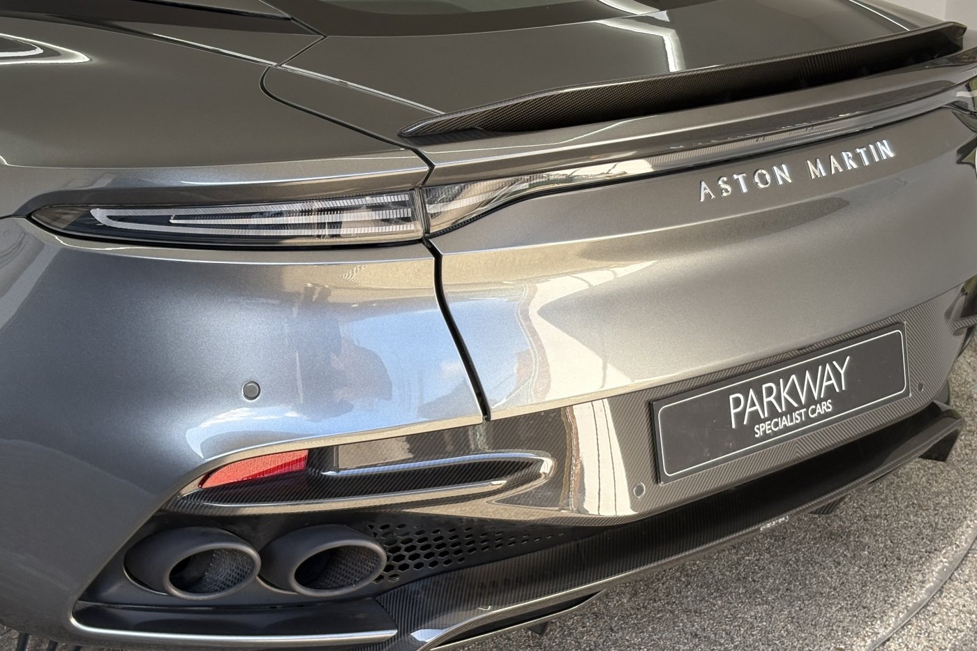 The DBS Superleggera features the new ZF 8HP95 transmission with a shorter final-drive ratio of 2.93:1, in contrast to the DB11's 2.70:1.[9] Chassis-wise, it also comes with torque vectoring and a mechanical limited slip differential for more focused track performance. The car also features many of the same aerodynamic features first seen on the DB11, including Aston Martin's Aeroblade system, but refines aerodynamics with an F1-inspired double-diffuser that helps the car generate 397 lb (180 kg) of downforce – the highest figure ever for a series production Aston Martin. A new quad-pipe titanium exhaust system improves engine sound, while the usage of carbon fibre in major areas of the car lowers the weight down to 1,693 kg (3,732 lb).
