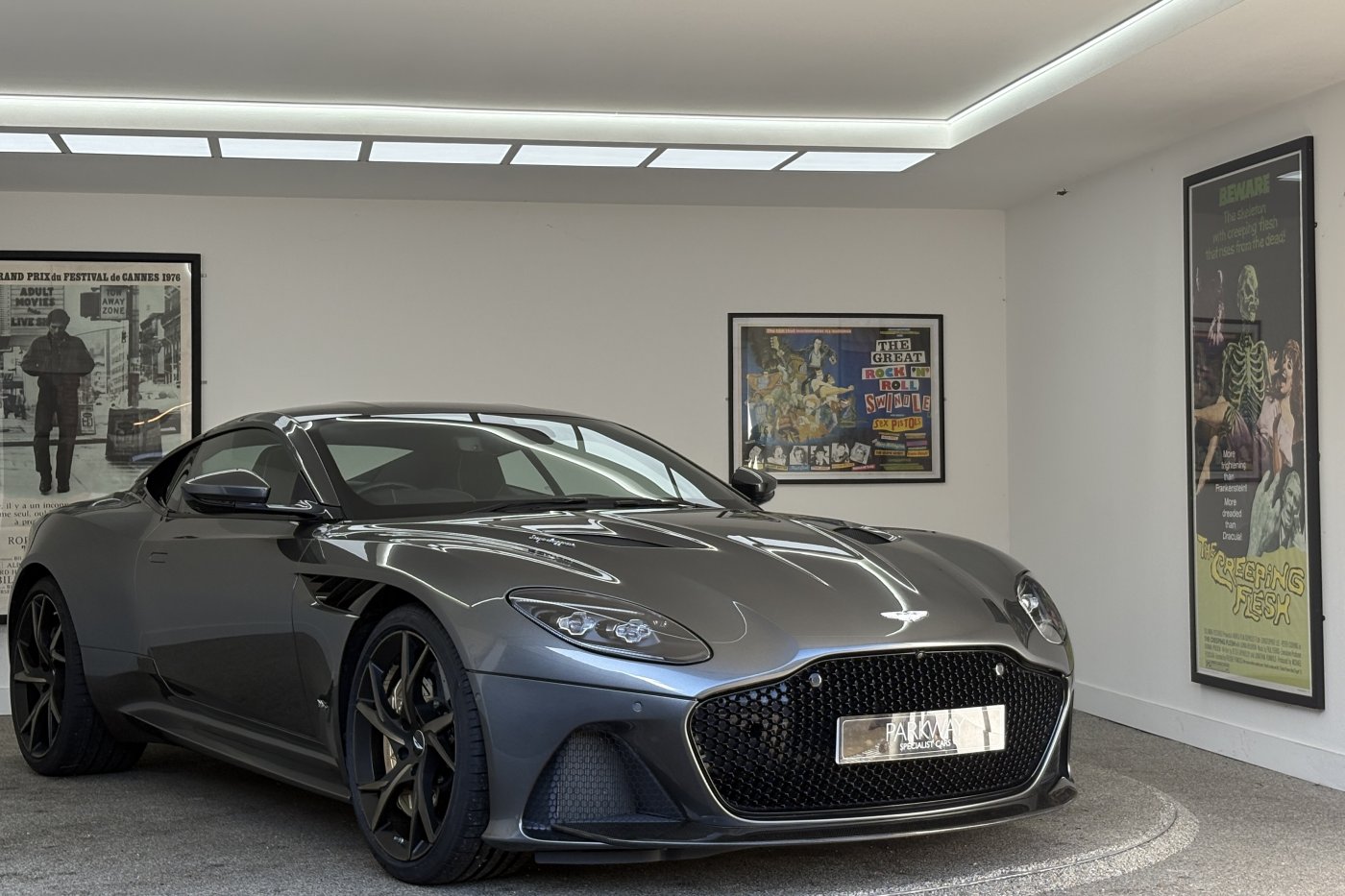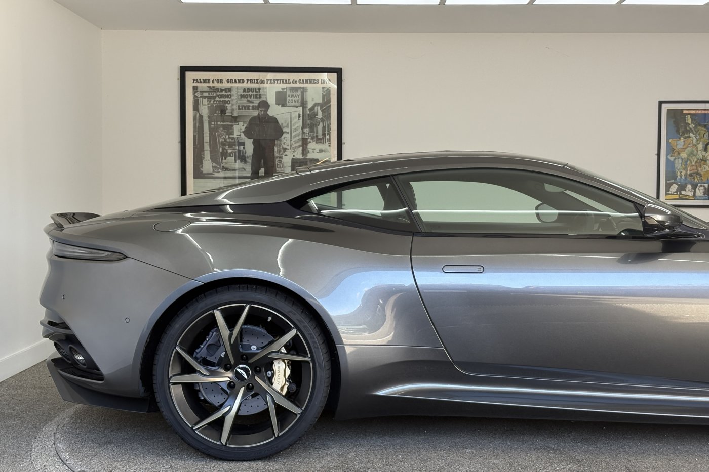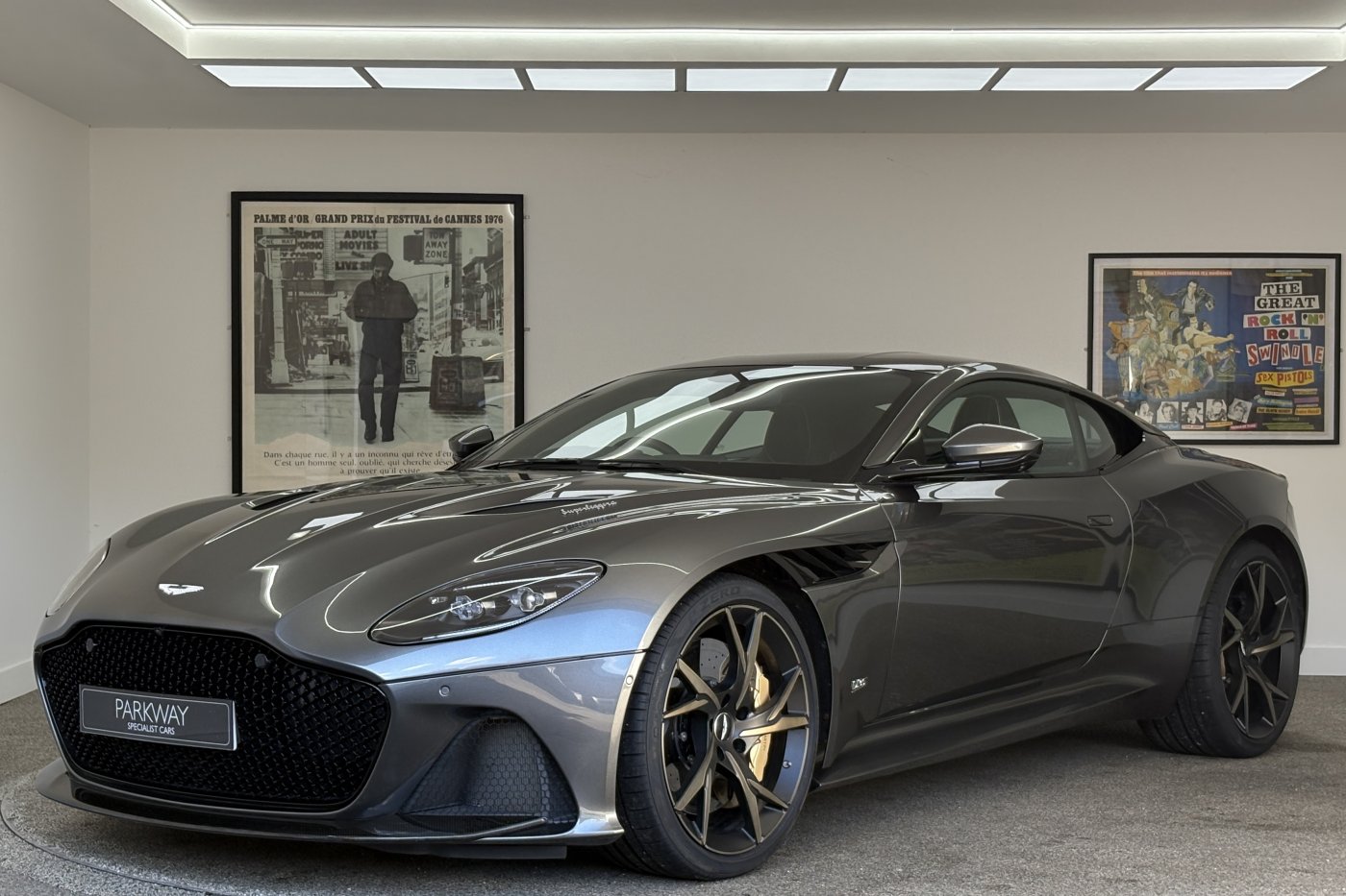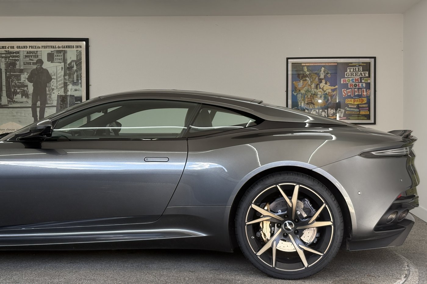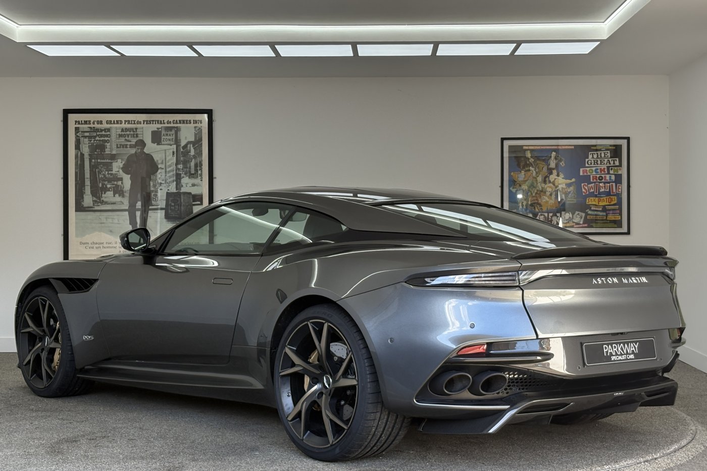 The DBS Superleggera features the new ZF 8HP95 transmission with a shorter final-drive ratio of 2.93:1, in contrast to the DB11's 2.70:1.[9] Chassis-wise, it also comes with torque vectoring and a mechanical limited slip differential for more focused track performance. The car also features many of the same aerodynamic features first seen on the DB11, including Aston Martin's Aeroblade system, but refines aerodynamics with an F1-inspired double-diffuser that helps the car generate 397 lb (180 kg) of downforce – the highest figure ever for a series production Aston Martin. A new quad-pipe titanium exhaust system improves engine sound, while the usage of carbon fibre in major areas of the car lowers the weight down to 1,693 kg (3,732 lb).