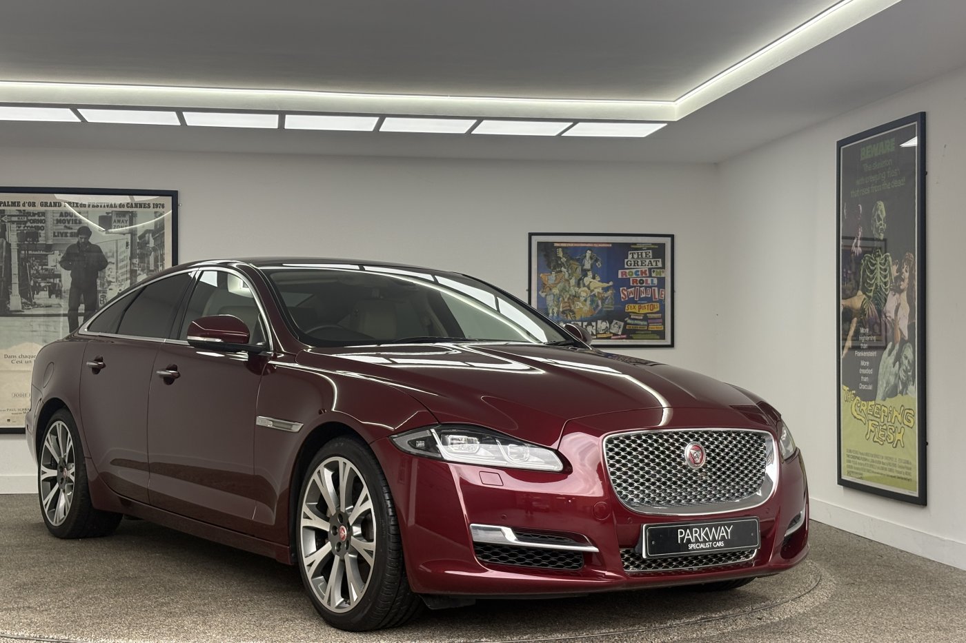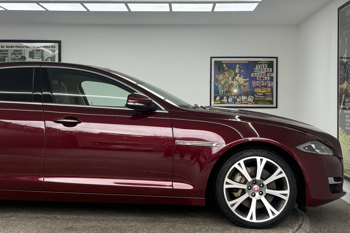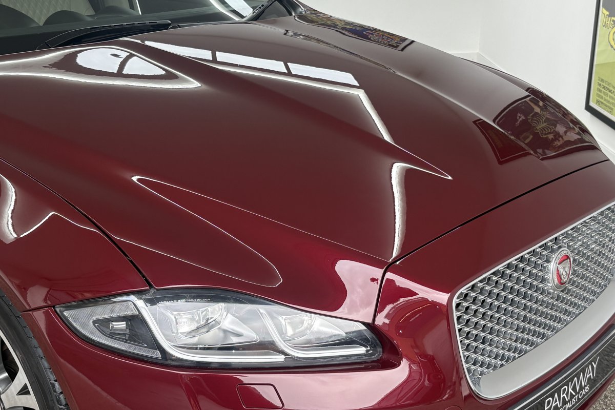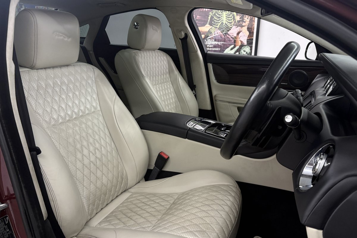This immaculate example has just arrived with us finished in the very rare Odyssey Red metallic with quilted leather ivory seats and 20 inch Orona diamond polished alloy wheels. Specification includes adaptive headlights, extended leather throughout, heated seats, heated steering wheel, heated front & rear seats, Meridian uprated sound system, TV tuner, Ivory Alcantara headlining, Keyless entry, DAB audio, perforated soft grain leather, Bluetooth, satellite navigation, WfiFi Hotspot, rear camera, dual climate control, cruise control, electric front seats with memory function, traction control, panoramic roof, alarm & immobiliser and much more.....Supplied with a detailed Jaguar service record, both keys and all the hand books.....
