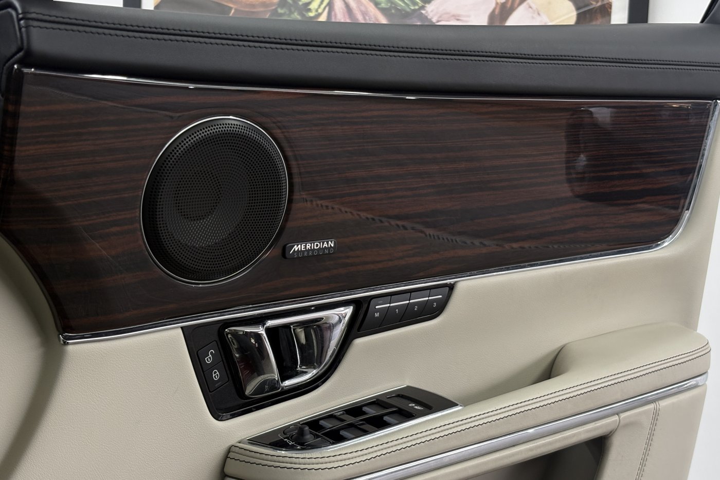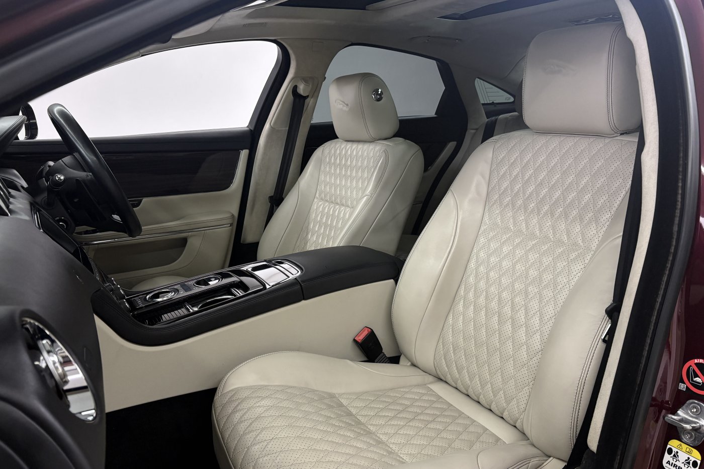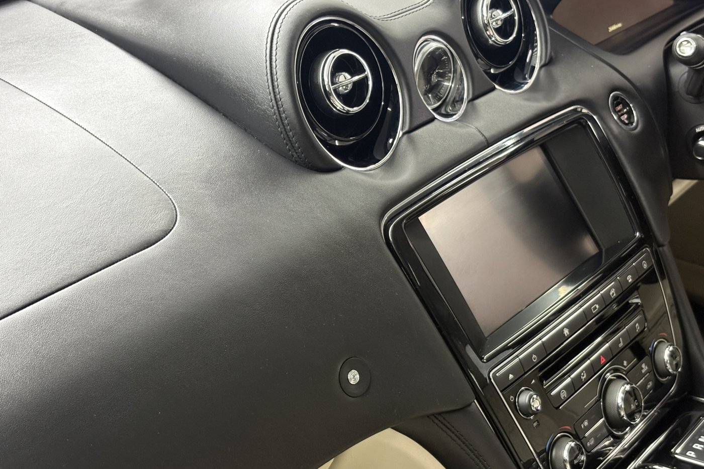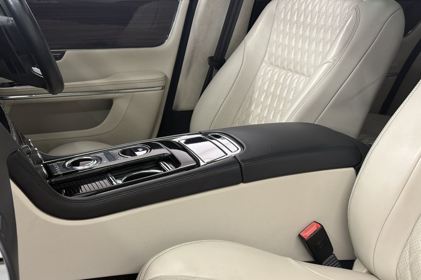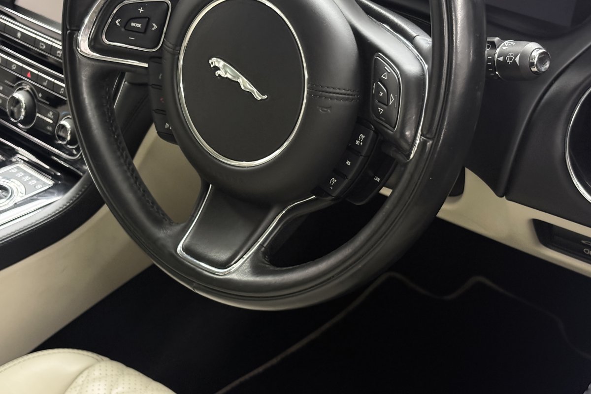Jaguar XJ's have always been known for the luxurious interiors and comfortable cabins. The example is no different in offering a superb experience for driver and accompanying passengers. From factory build our XJ was opted with the ivory diamond stitched perforated soft grain leather seating with the black leather dash and ivory/black leather door cards. The centre armrest and steering wheel are trimmed in matching black leather with steering wheel and door inserts in gloss teak.