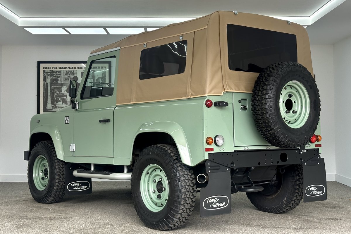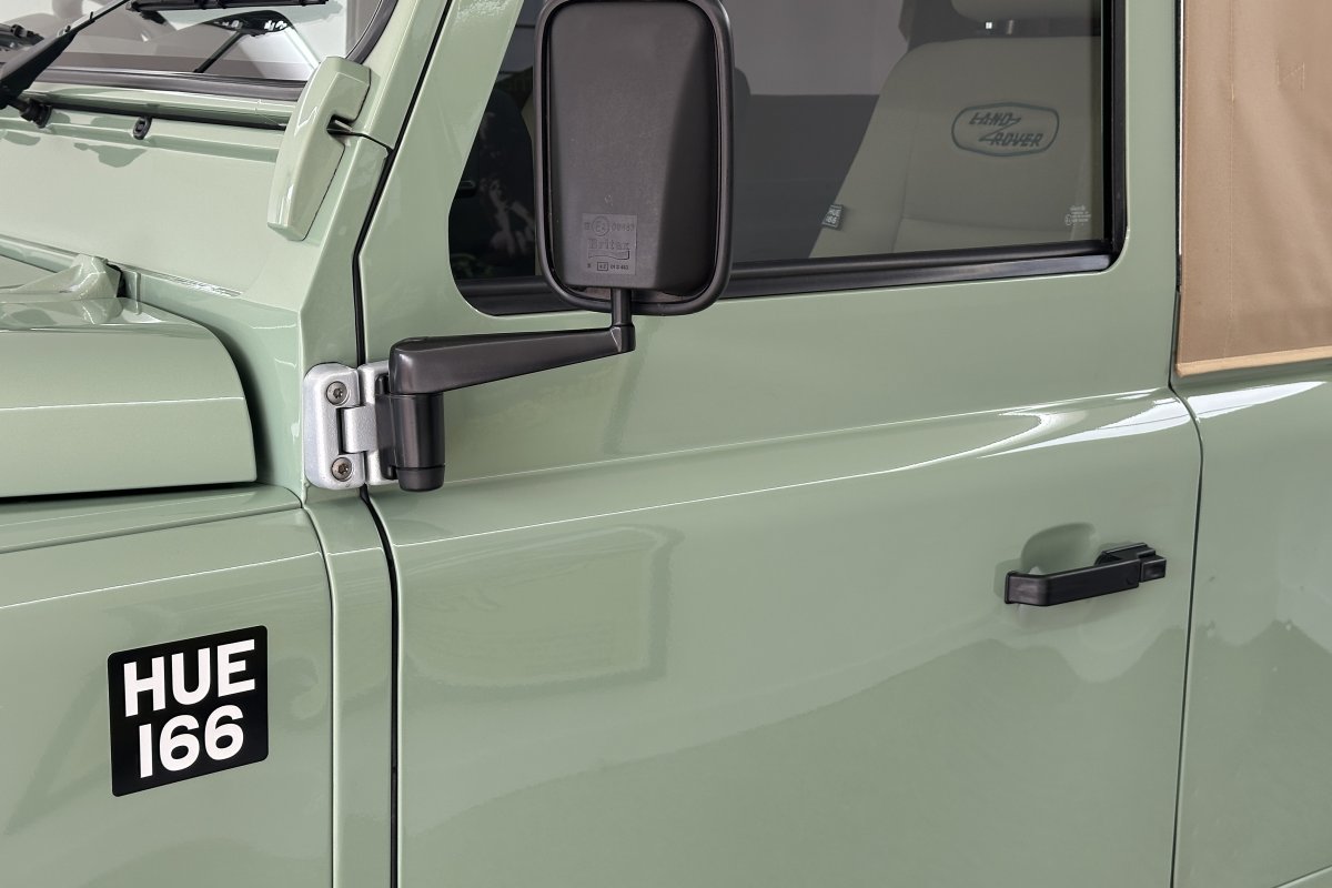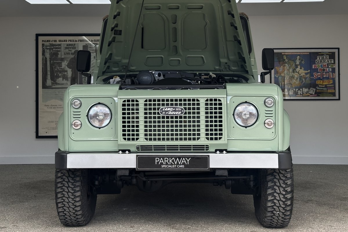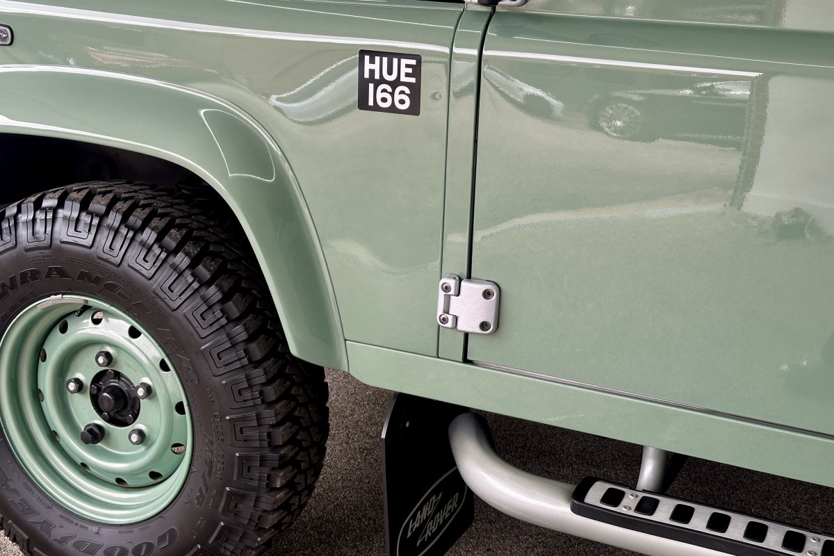 1 of only 400 produced to celebrate 67 years of production and the conclusion of the "Defender", the final Land Rover build had many special features including the Grassmere Green paint determined by a surplus of military paint and a black square on the wing with white letters that reads HUE 166; The reg of the first pre-production Land Rover.