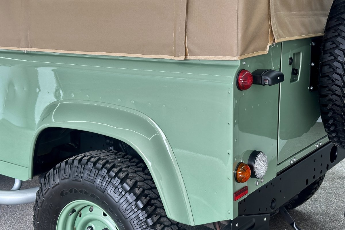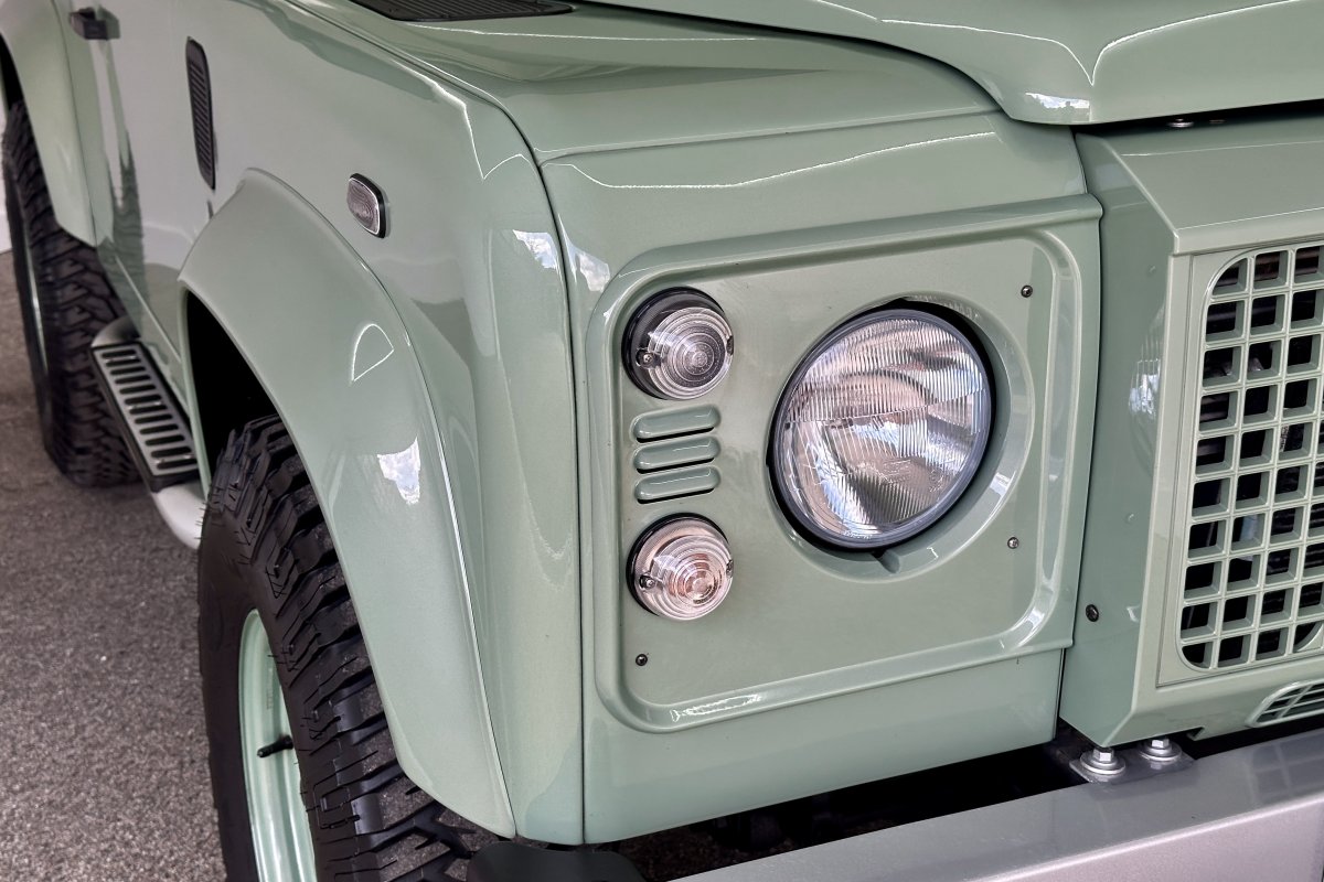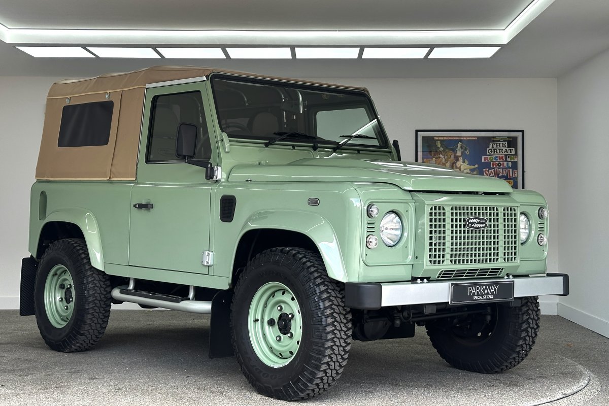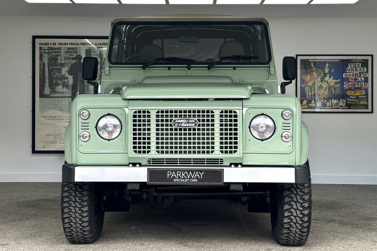 1 of only 400 produced to celebrate 67 years of production and the conclusion of the "Defender", the final Land Rover build had many special features including the Grassmere Green paint determined by a surplus of military paint and a black square on the wing with white letters that reads HUE 166; The reg of the first pre-production Land Rover.