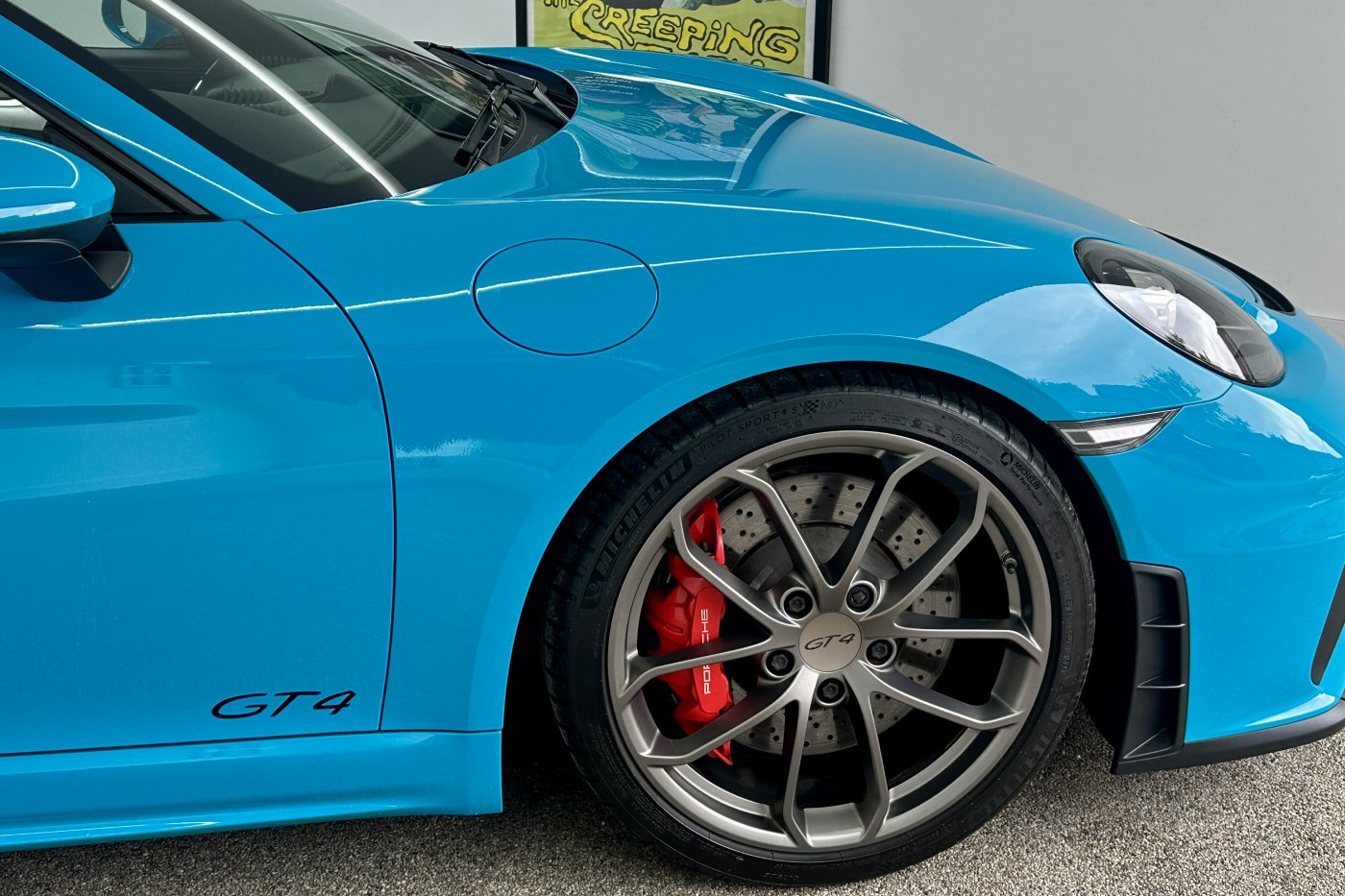 The 718 Cayman GT4 and 718 Spyder (previously named the Boxster Spyder) were revealed in June 2019. Both are differentiated from less powerful models by more aggressive bodywork, including a lower stance, new front bumper, a large new diffuser, and exhaust pipes that are spaced farther apart. The GT4 also features larger side intakes and an adjustable wing, the latter of which helps it generate up to 150 kg (330 lb) of downforce, 50 percent more than its predecessor. Both have a naturally aspirated 4.0-litre flat-6 derived from the 992's 3.0-litre 9A2EVO engine, which is rated at 309 kW (414 hp; 420 PS) at 7,600 rpm and 420 N⋅m (310 lb⋅ft) of torque at 5,000–6,800 rpm. The engine has cylinder deactivation, a first for Porsche. Porsche claims a top speed of 304 km/h (189 mph) for the GT4, and 301 km/h (187 mph) for the Spyder. The front suspension and brakes are borrowed from the 911 GT3, and the adaptive dampers, ABS and stability-control programming are borrowed from the 911 GT3 RS. The anti-roll bar end links, camber and toe can be manually adjusted, but the ride height–3 cm (1.2 in) lower than a standard 718–is fixed.